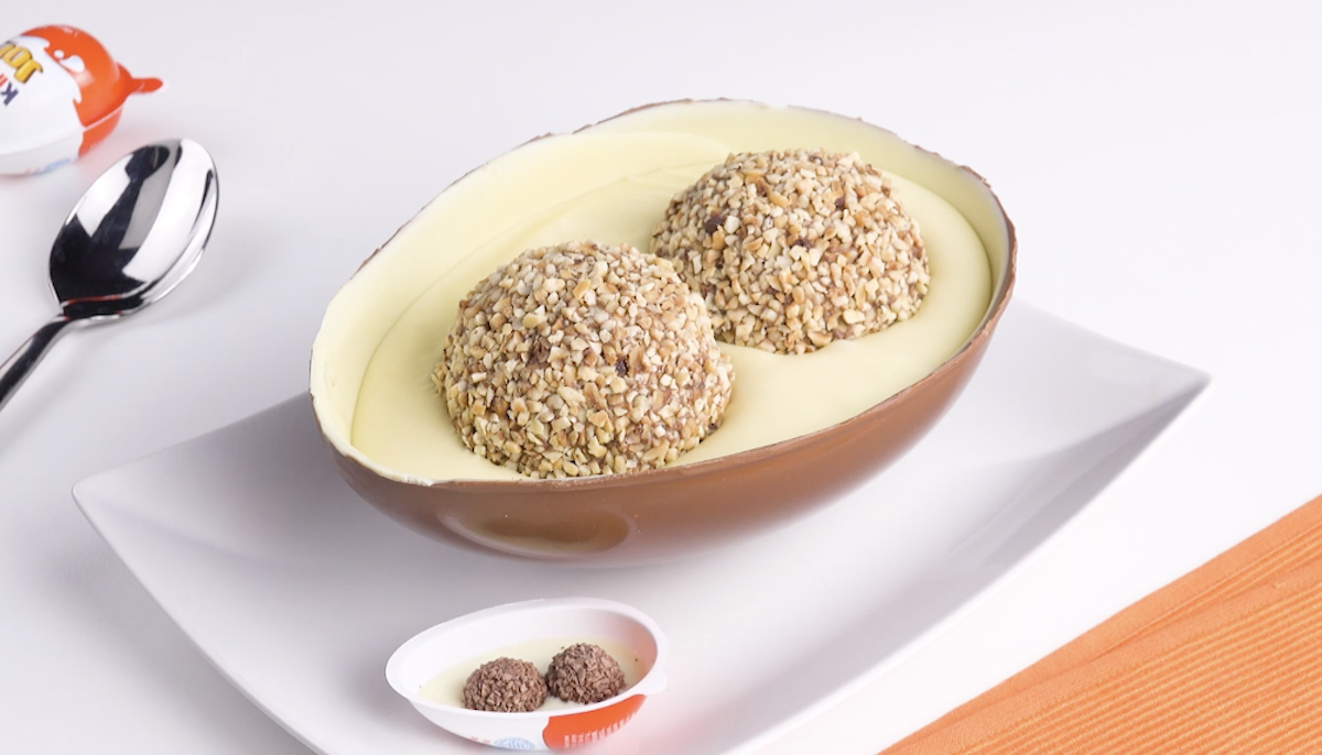 Früher war es das Überraschungsei, das Kinder begierig im Supermarkt angestarrt haben. 2006 hat sich eine ähnliche und ähnlich begehrenswerte Schoko-Spezialität dazugesellt: „kinder Joy“. Dem Geniestreich aus Schoko, Milchcreme, Nuss-Nougat-Creme und gefülltem Haselnusskonfekt kann weder Groß noch Klein widerstehen. Mit diesem Rezept kannst du das schmackhafte Ei selbst machen – und es ist so groß, dass du gleich alle Schoko-Haselnuss-Fans um dich herum versorgen kannst. Hier findest du das Rezept für das XXL-kinder-Joy.