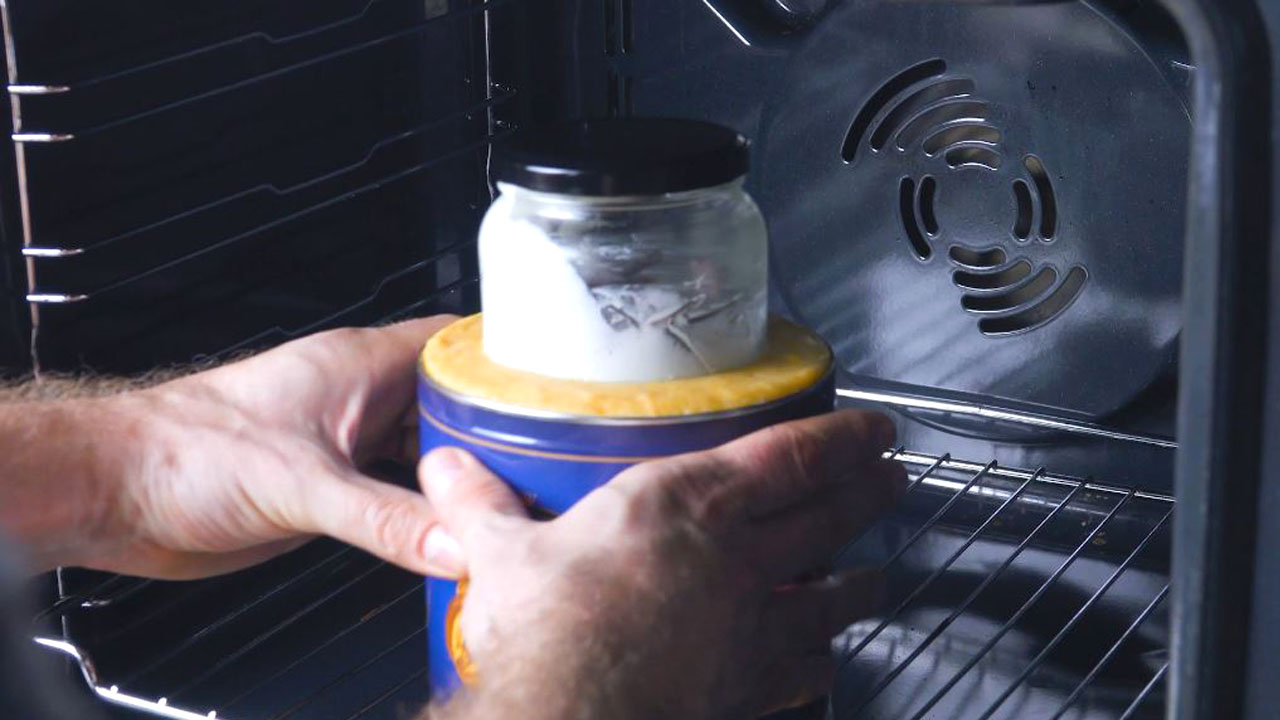 4. Gib die Dose anschließend mitsamt dem Glas für etwa 90 Minuten bei 180 °C Umluft in den vorgeheizten Backofen.