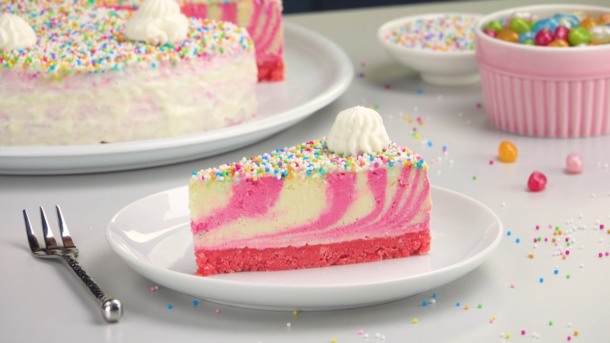 Dieser bunte Käsekuchen für die Einschulungsparty ist der Hingucker